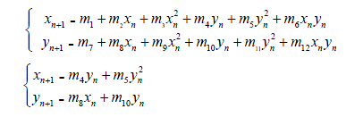 其中,(i=1, 2,?, 12)为待定常系数。第二组公式为简单二维超混沌系统