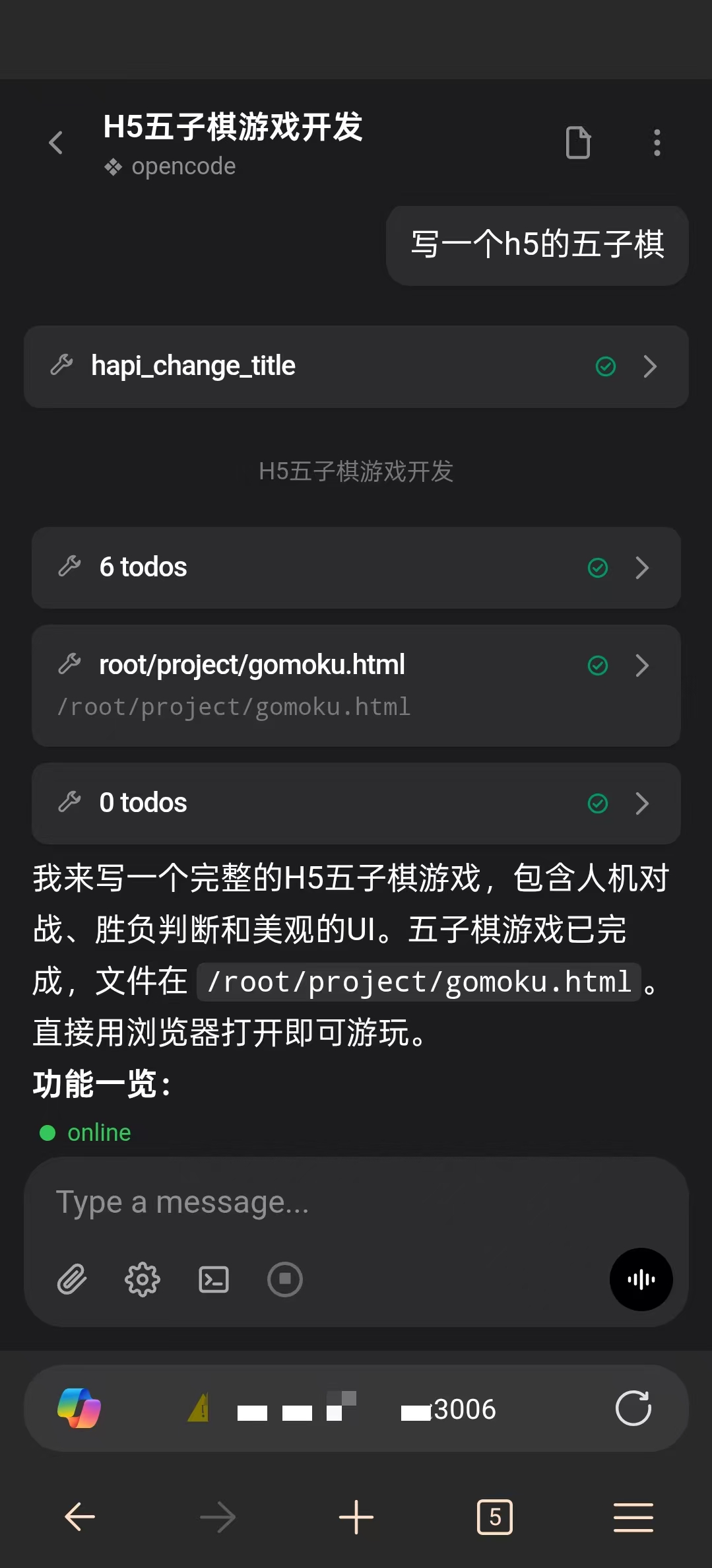 开启后,用户就可以直接在手机或其他设备中使用浏览器访问 OpenCode Web 服务,如 http://<公网 IP>:4096 :