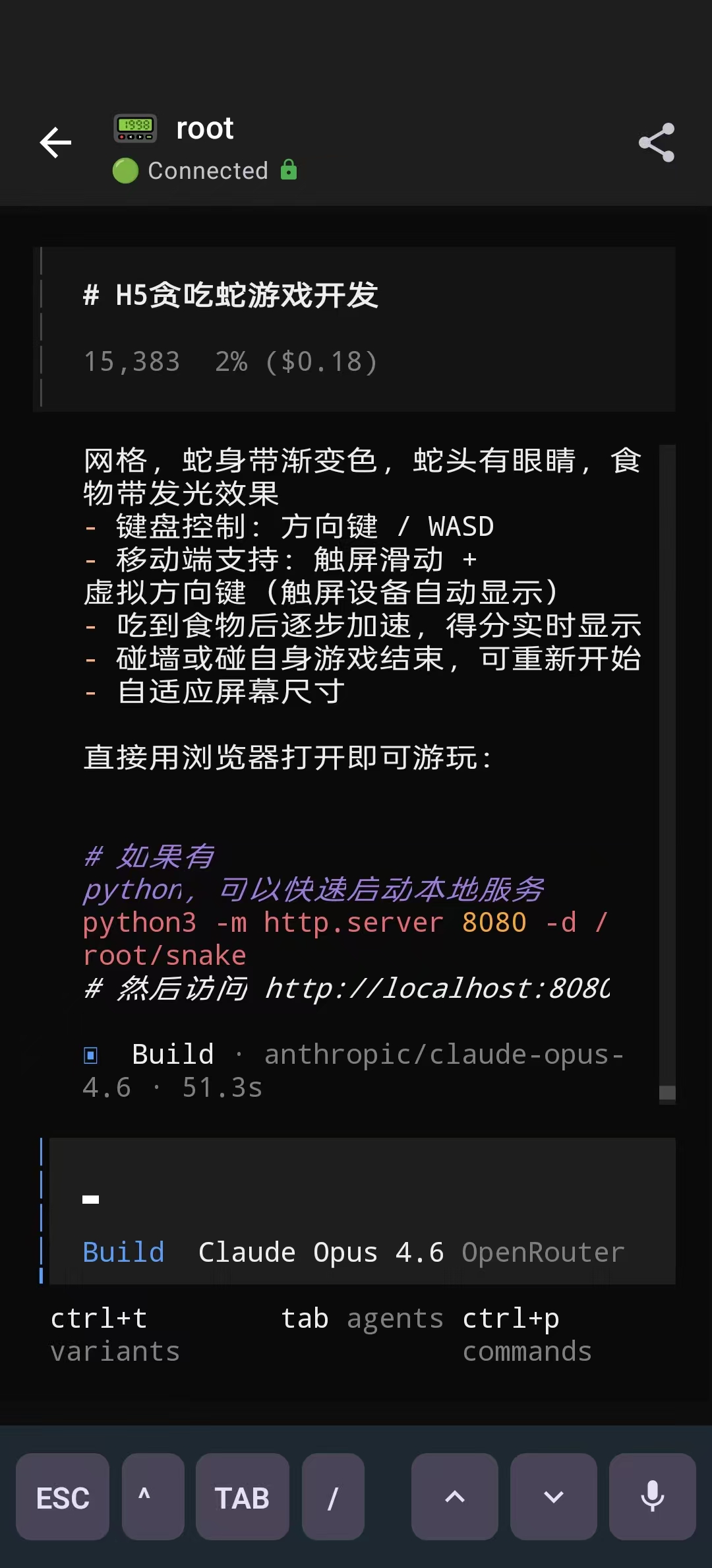 这个方案的优点是简单易用,交互体验较良好,过程信息完整,不依赖于手机操作系统,兼容性高。但缺点是目前仅 OpenCode 和 Claude Code 提供该功能,另外 Web 页面对移动端的适配有待提升,有些操作不太方便。由于 OpenCode Web 直接暴露在公网中,需要关注安全性。建议使用 HTTPS 加密通讯,并且设置复杂性较高的用户密码。