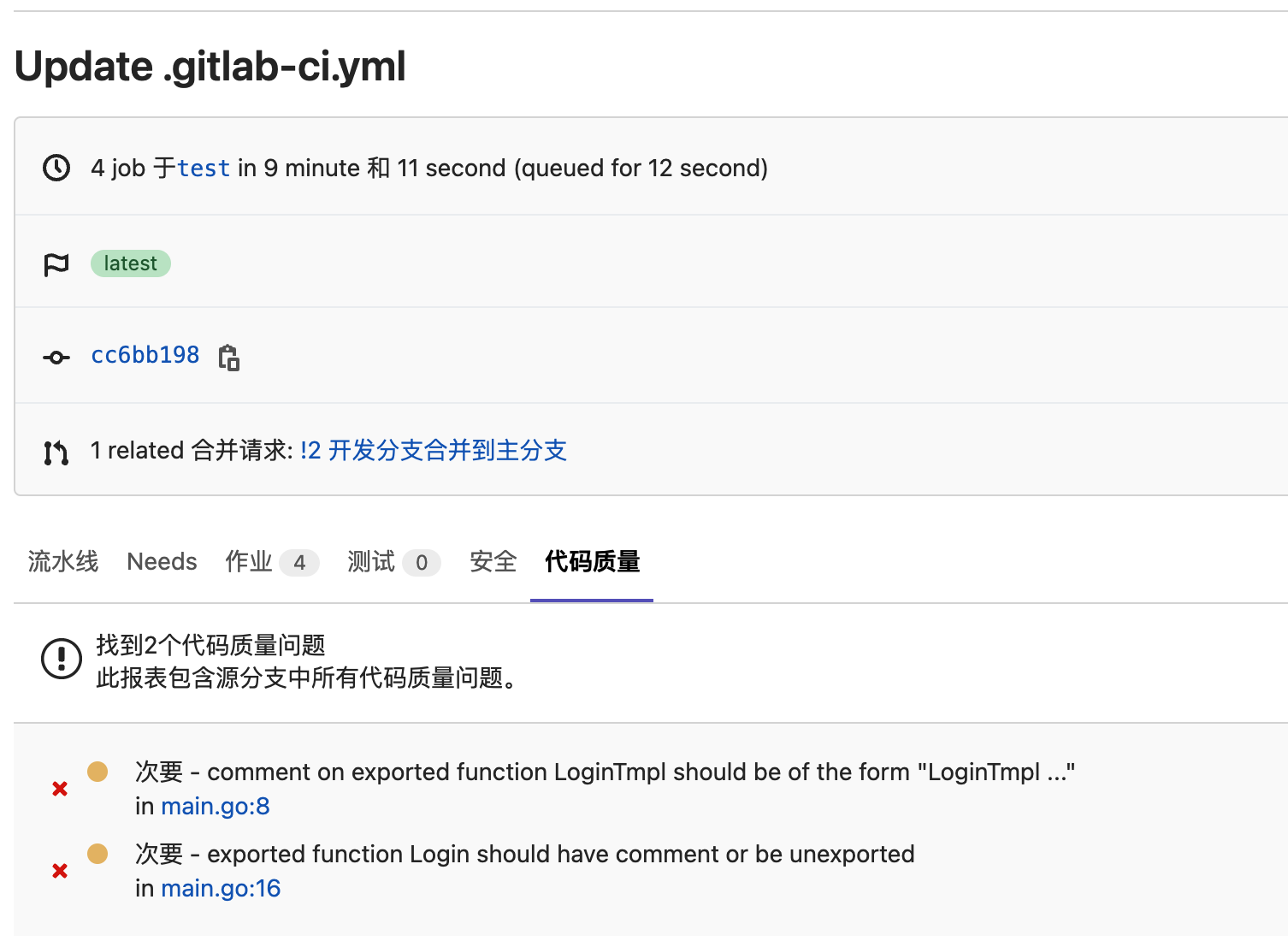 有了工具,有了方法,如何跟CICD做集成,如何与Code Review做结合,我依然拿GitLab CI举例,分别实践GitLab自带的代码质量扫描和集成SonarQube的代码质量扫描。