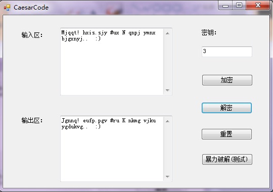 因为加密和解密互为逆过程,所以我们把加密和解密做成一个同函数,如果加密的key是3,解密时就转换为-3,这样能节省一些代码