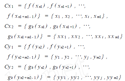 其中: xi = f ( xn1+i- 1 ) ; xxi = gk ( xn1+i - 1 ) ; yj =f( yn2+ j - 1 ) ; yy j = gk ( yn2+ j - 1 ) ;