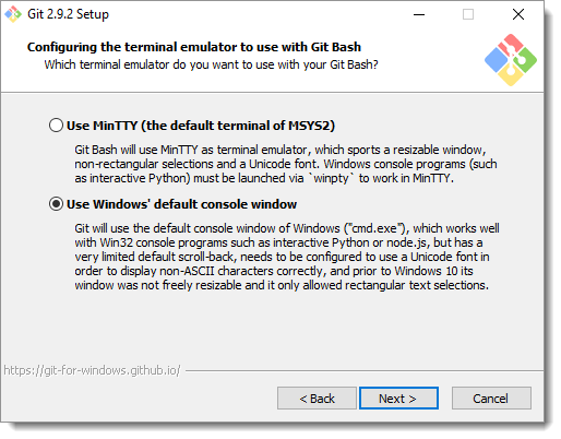 -it与docker交互,提示the input device is not a TTY的问题:windows下使用sh可以通过git自带的git bash,windows在安装git时,可选择两种终端模式: