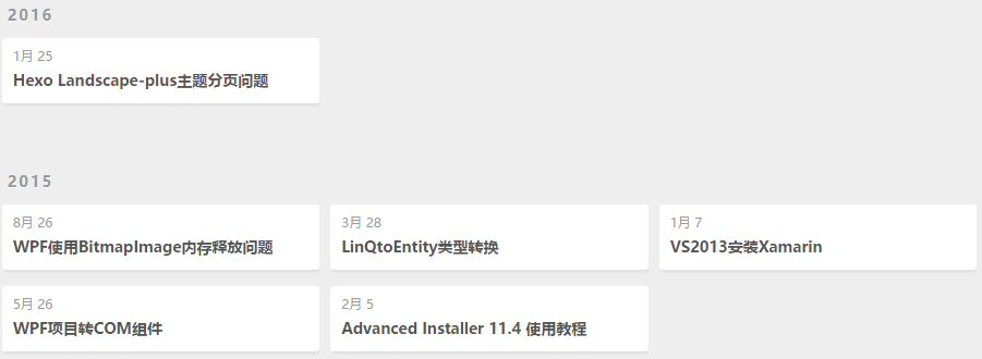 进入Archives页面后,发现文章列表没有以标题“方块”展示,而是和主页一样以标题和内容展示: