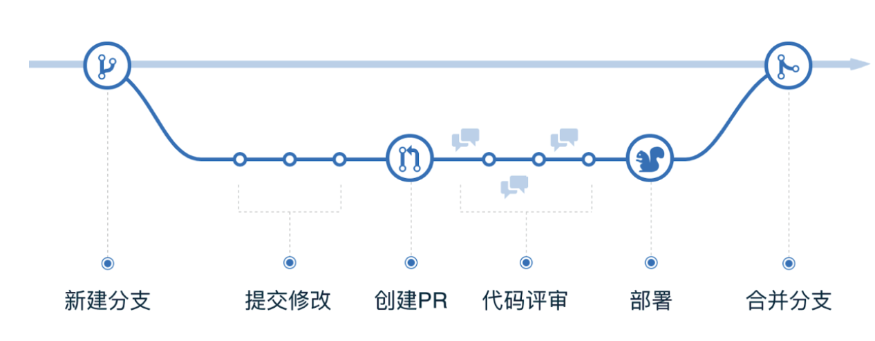 GitHub Flow是Git Flow的简化版,它是 Github.com 使用的工作流程。