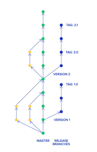 Paul Hammant 2013年提出的模型,是SVN常用的模型,在TBD模型中,主干分支用于开发,通过新的分支来交付。同GitHub Flow一样,对于多环境的需求,需要开多几个分支用于不同的环境。