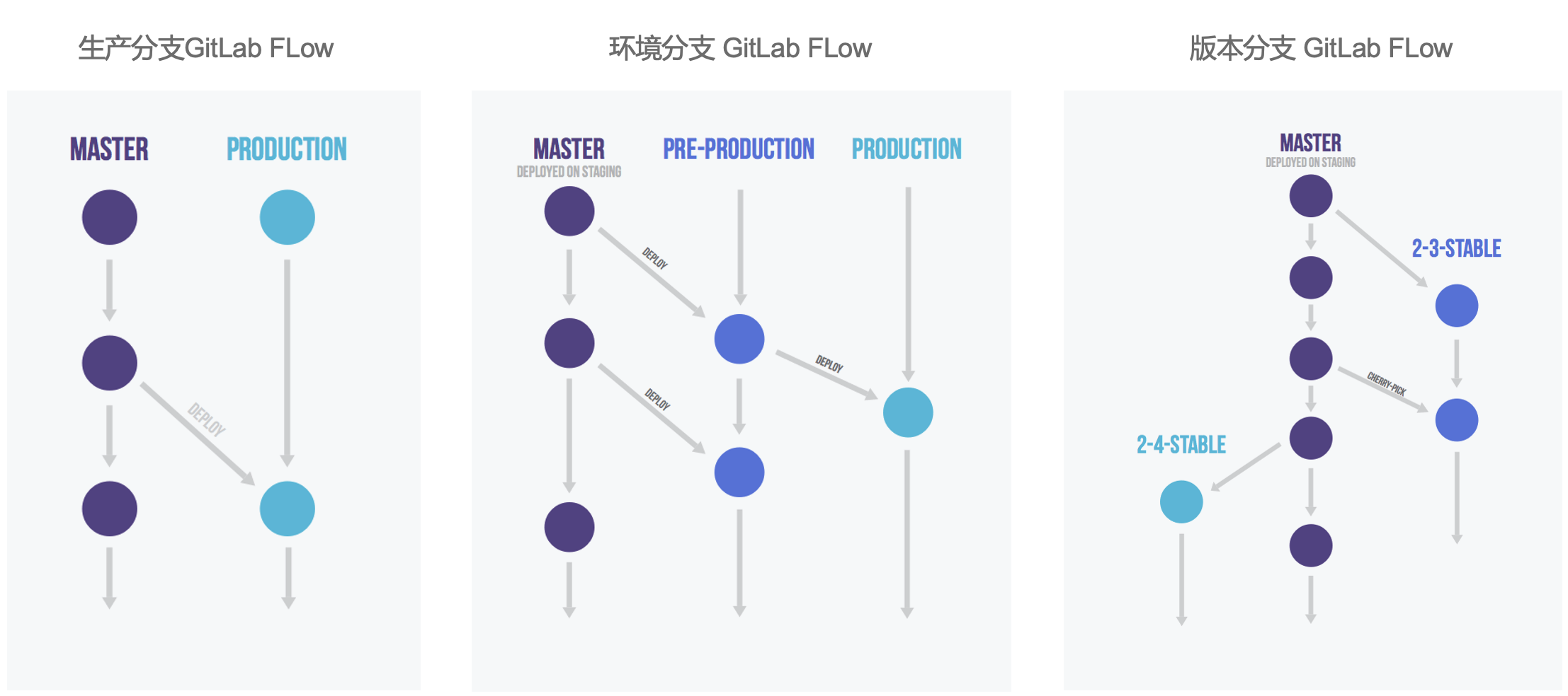 开发分支是预发分支的“上游”,预发分支又是生产分支的“上游”。代码的变化,必须由“上游”向“下游”发展。比如,生产环境出现了bug,这时就要新建一个个性分支,先把它合并到Master,确认没有问题,再cherry-pick到Pre-Production,这一步也没有问题,才进入Production。
