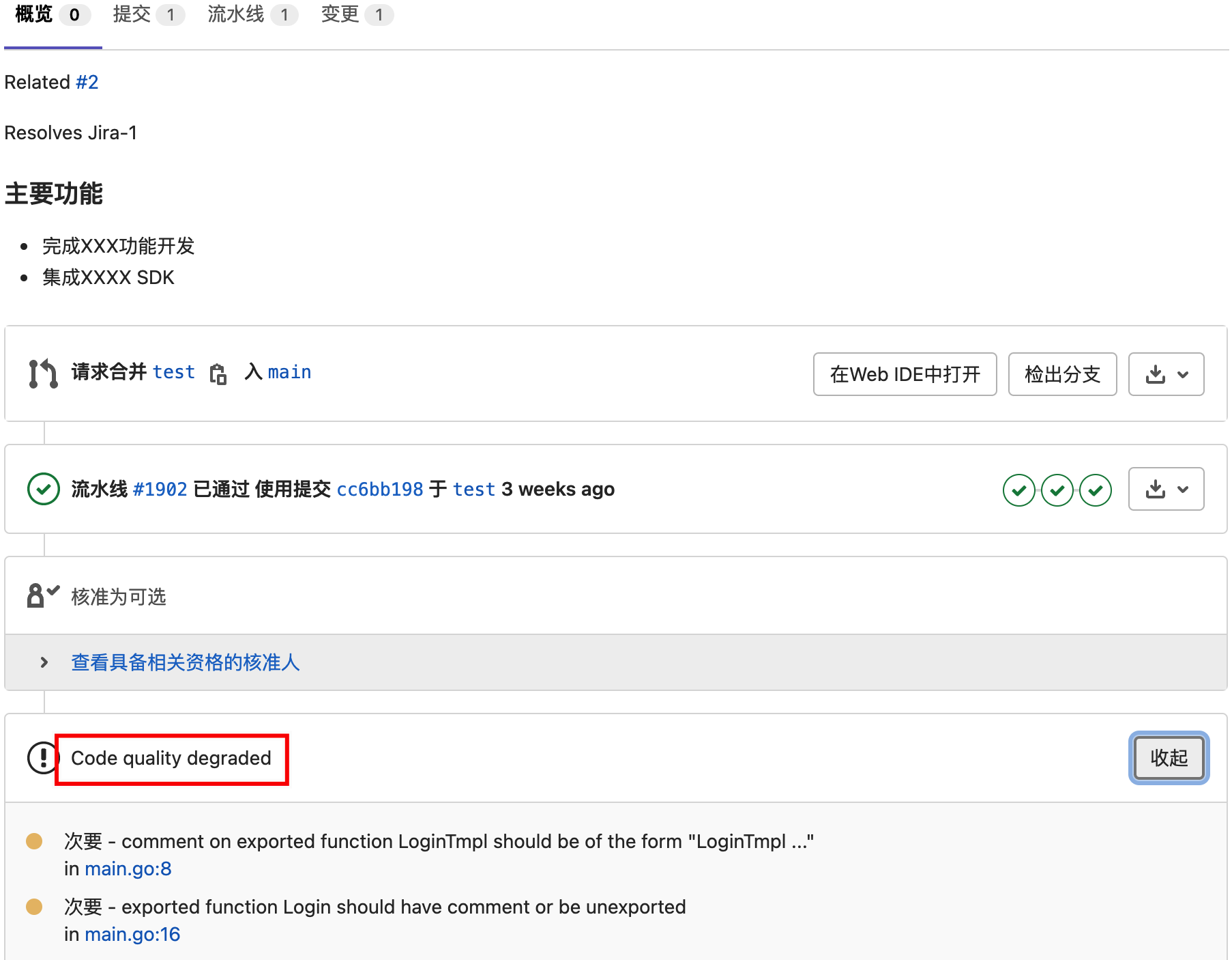 有了工具,有了方法,如何跟CICD做集成,如何与Code Review做结合,我依然拿GitLab CI举例,分别实践GitLab自带的代码质量扫描和集成SonarQube的代码质量扫描。