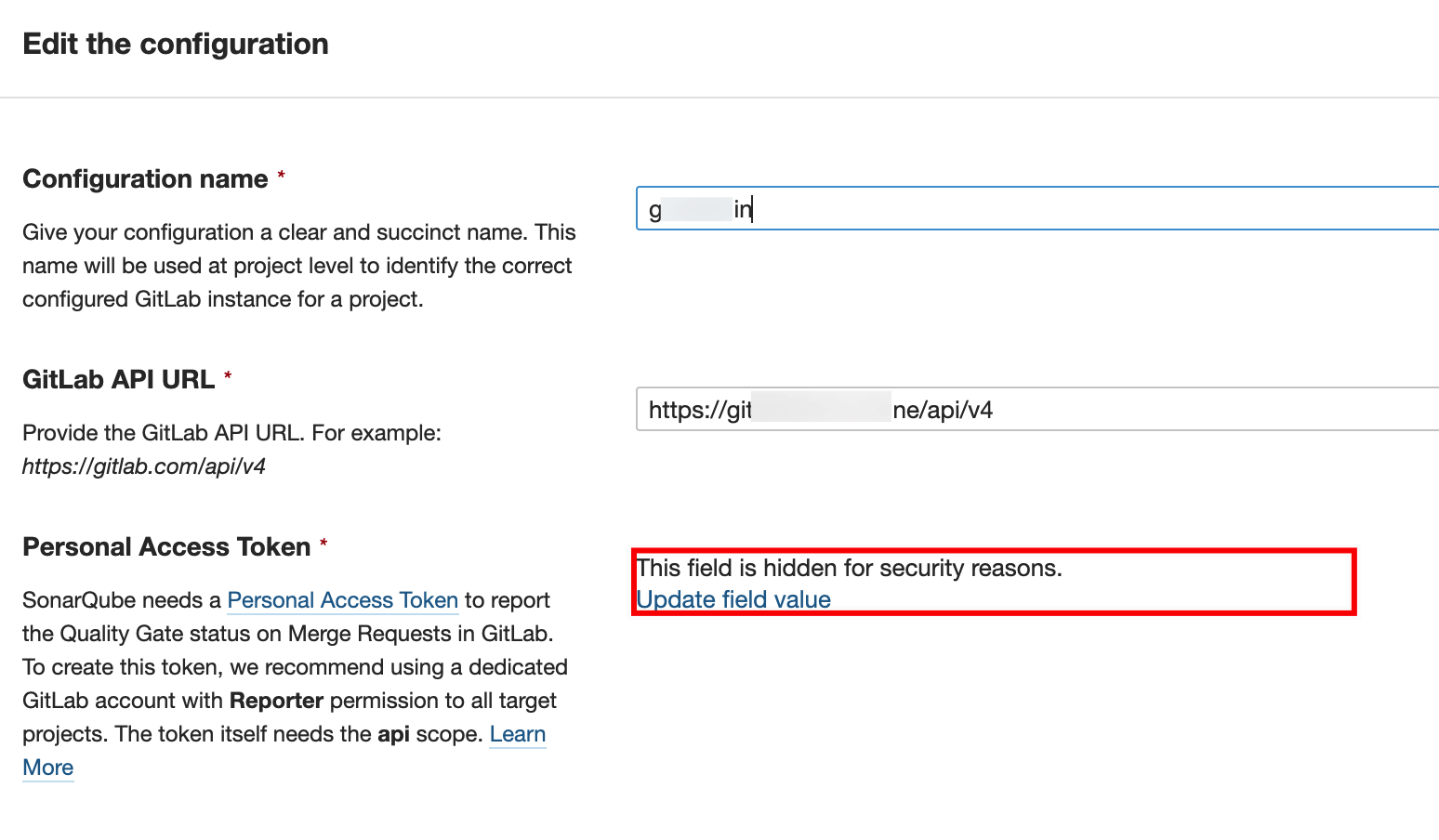 填写配置名称、GitLab API地址,和用于做集成对接的账号的Token,引导做的非常人性化,如何获取Token也给与了指引。