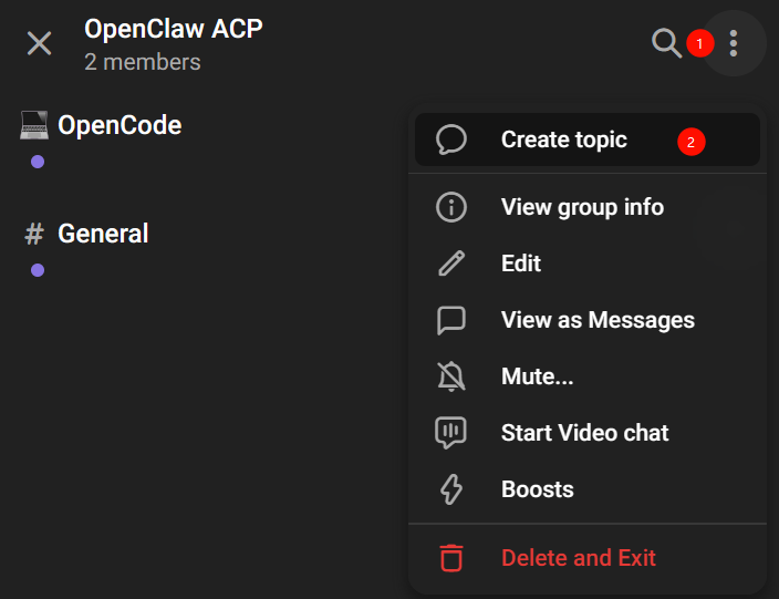 - 如果你还有 Claude Code, Codex 等其他 ACP Agent,你也可以分别建 Topic,让它们各司其职。