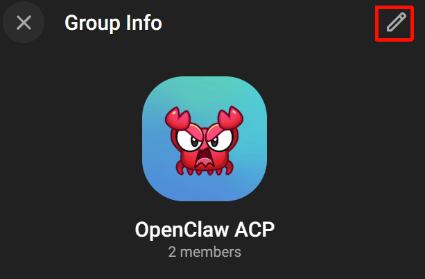 OpenClaw ACP,点击 Group 右上角的 “铅笔” 按钮进入设置: