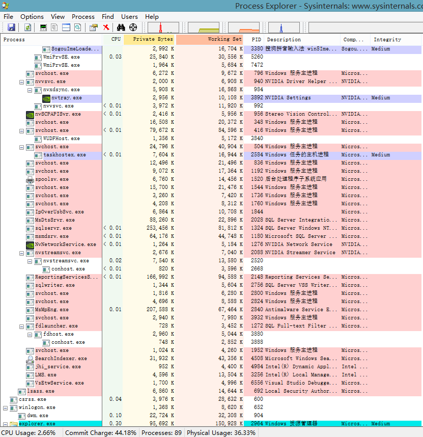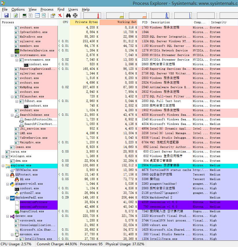 - 打开Process Explorer,在GridView的Header上右键,选择Select Columns,勾选Integrity Level
