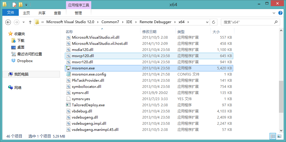 3.在远程计算机上打开x64或x86文件夹,运行“msvsmon.exe”
